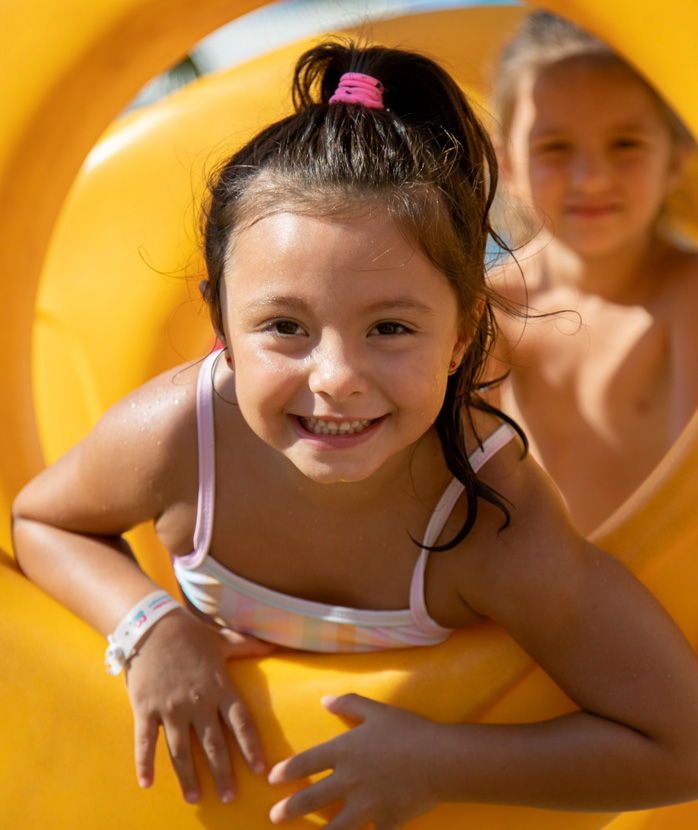 For kids’ joy there’s also a large waterslide in the pool, while the youngest can enjoy a fresh 180 m² of fun in the colorful Splash Park Area! Sprays and dancing water jets bursting from the ground, slides where you let the current carry you, and tipping buckets pouring water from above: cooling off here is child’s play—literally! We are the Family Hotel in Cesenatico with fun water play features available free of charge.